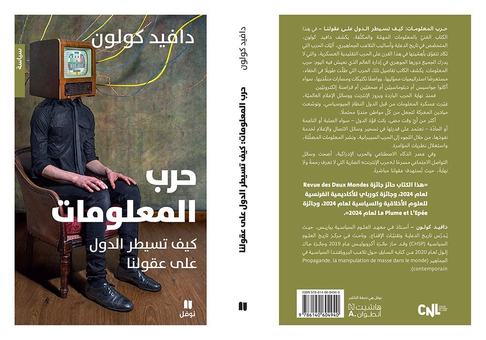 صدر حديثاً عن دار نوفل / هاشيت أنطوان كتاب “حرب المعلومات” للباحث الفرنسي دافيد كولون، بترجمة أدونيس سالم، وفيه يتناول، على مدى 380 صفحة، آليات حرب المعلومات، وخاصة في عصر الذكاء الاصطناعي ووسائل التواصل الاجتماعي.